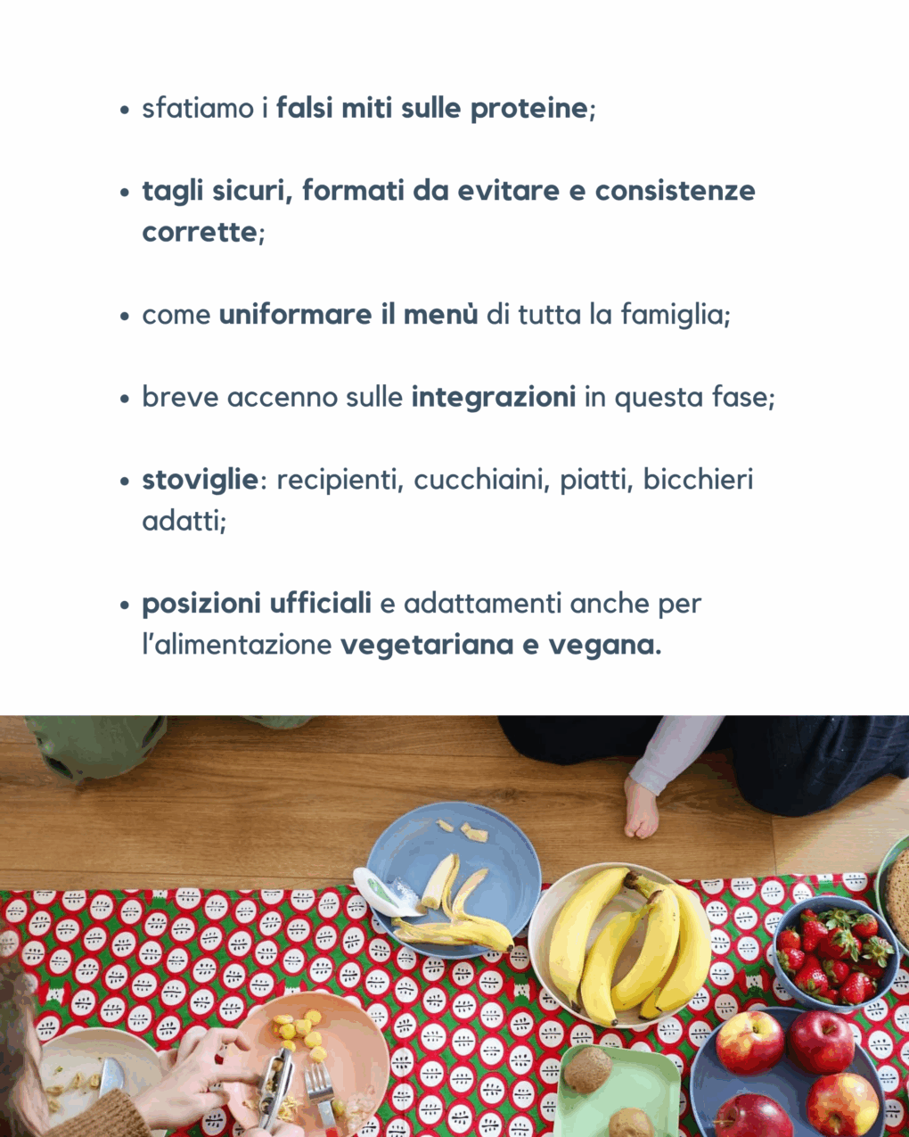 con un approccio tradizionale con le pappe, sia per chi preferisce l’autosvezzamento utilizzando i tagli sicuri o un mix di entrambi gli approcci.